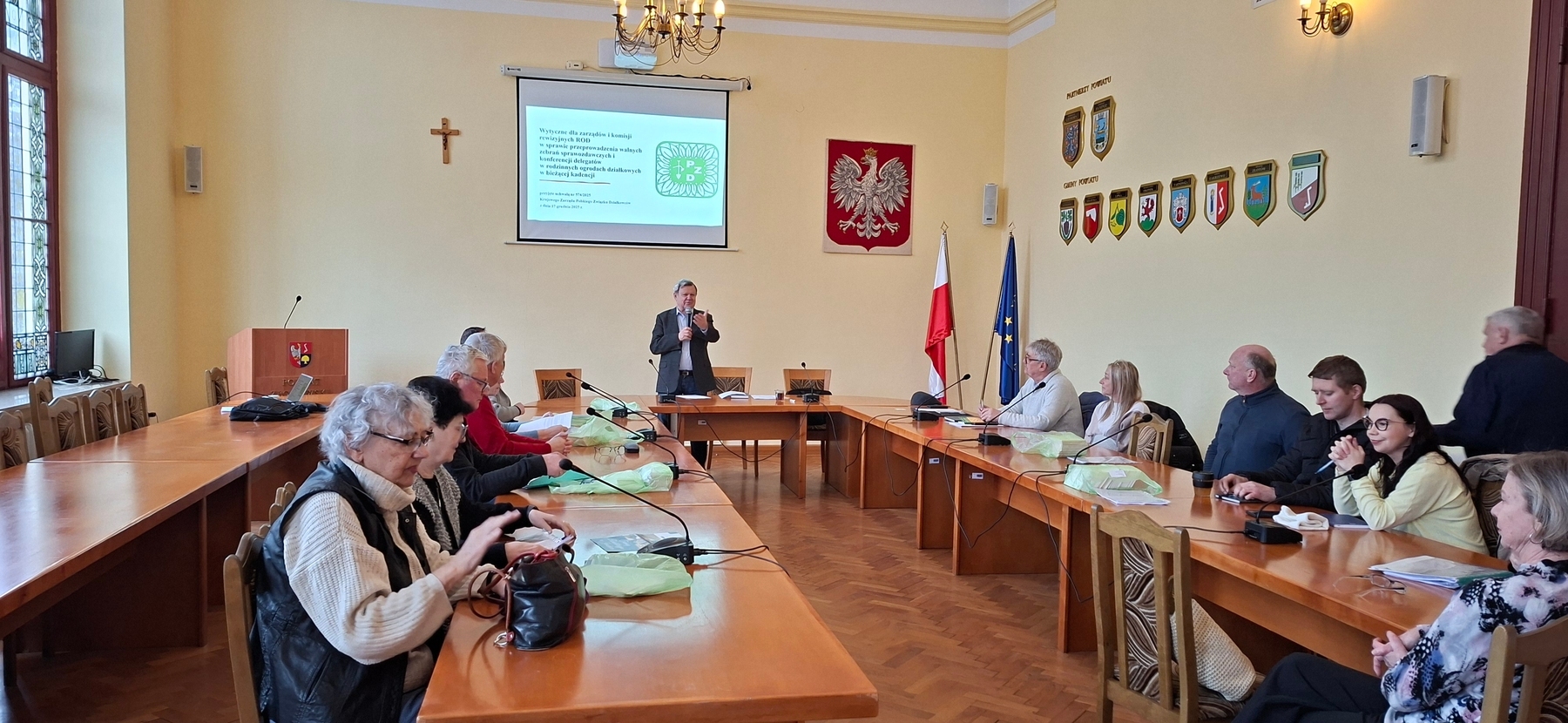 Tematyka szkoleń obejmowała wytyczne dla zarządów i komisji rewizyjnych ROD w sprawie przeprowadzenia walnych zebrań sprawozdawczo-wyborczych w rodzinnych ogrodach działkowych PZD w roku 2026 oraz zmiany przepisów w Statucie PZD.
