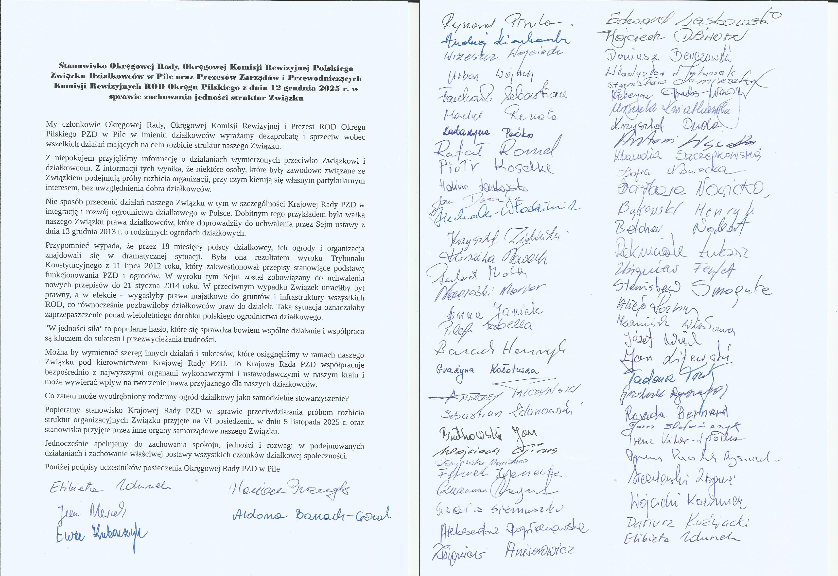 Stanowisko Kolegium prezesów ROD powiatu Hrubieszowskiego z dnia 1.12.2025 r. – czytaj tutaj.