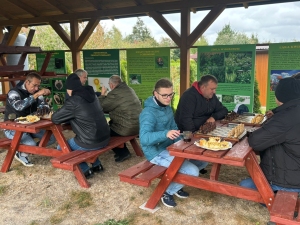 Na wszystkich uczestników czekały prawdziwe kulinarne przysmaki – fenomenalna grochówka i aromatyczne kiełbaski przygotowane przez druhów z OSP Głomsk.